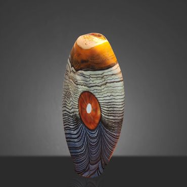 In the Abstract Series, the disks will often look raised and inserted even though I flatten them into the existing mass of glass.